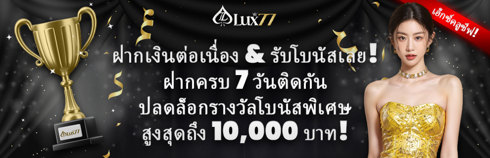 นอกจากโบนัสสมาชิกใหม่แล้ว LUX77 ยังมีโปรโมชั่นเสริมอื่นๆ อย่างต่อเนื่อง เช่น คืนยอดเสีย โบนัสฝากประจำวัน และกิจกรรมพิเศษตามช่วงเวลา เพื่อเพิ่มความคุ้มค่าในการเล่นในระยะยาว ผู้เล่นจึงไม่เพียงแค่ได้รับความสนุก แต่ยังได้รับความคุ้มค่าในทุกการเดิมพัน